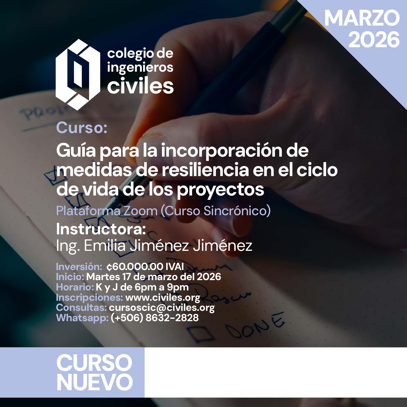 “Quise compartirles mi experiencia para que ustedes como profesionales en constante actualización, accedan con confianza a llevar el curso de Presupuesto de Obras Civiles impartido por el Colegio de Ingenieros Civiles de Costa Rica.”