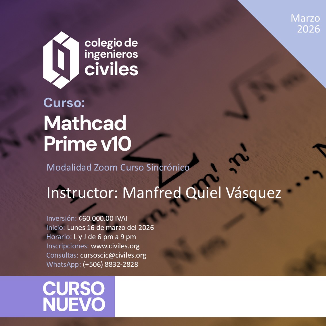 Fecha límite para matricular: Martes 17 de marzo del 2026. CUPO LIMITADO